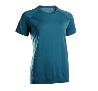 Our yoga designers created this lightweight and feminine product using seamless technology. You'll forget all about it on the mat! A seamless, breathable T-shirt in lightweight, draping fabric with a subtle pattern, perfect length and comfy straight fit: Perfect for learning dynamic yoga!